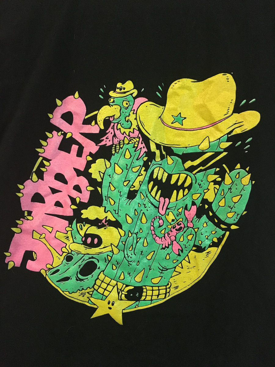 Leftover shirts from our 2019 southwest tour with Long Knives! Featuring a cute ass cactus and a scorpion friend! Art by Tom Lowell